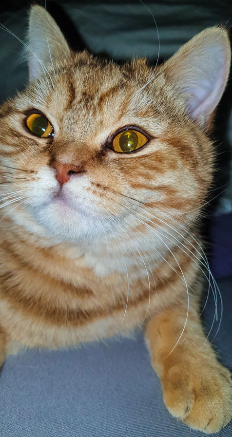Sie ist erst 7 Monate alt, schlank und noch verhältnismäßig klein. Sie wurde noch nicht kastriert und nicht gechipt, das sollte in den nächsten Tagen passieren. Sie ist Fremden gegenüber sehr scheu.