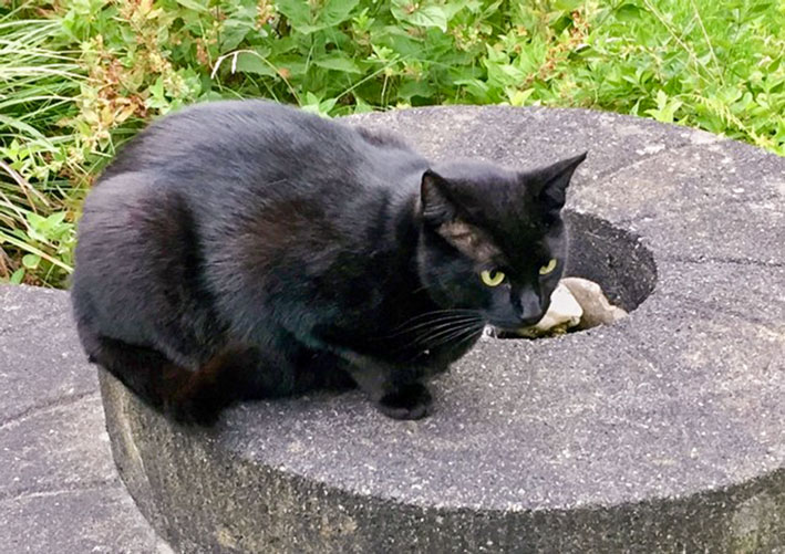 Tinka ist ganz schwarz und hat in linken Ohr einen kleinen Ritz, auf dem Foto nicht erkennbar. Tinka ist gechippt. Die letzten 3 Ziffern des Transponders lauten 230.